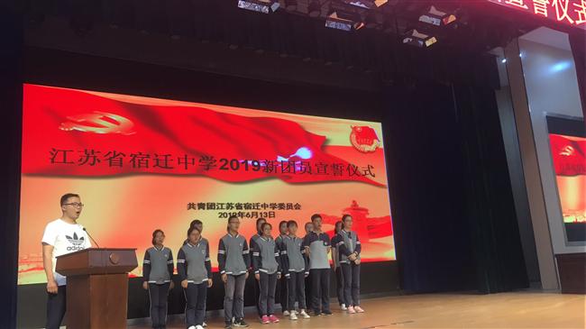 6月13日上午,宿迁中学2019年新团员入团宣誓仪式在宣德厅隆重举行。校团委书记陆小利、副书记魏学广和团委委员左仁部参加了活动。
