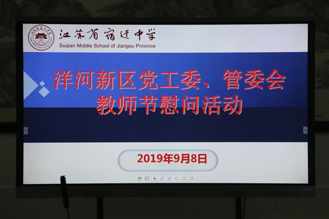 9月8日下午,洋河新区党工委书记张联东一行到宿迁中学进行教师节慰问活动。