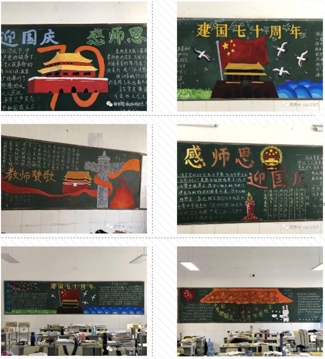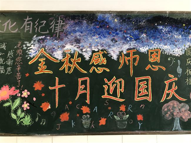 为庆祝新中国成立70周年和第35个教师节,激发全体师生的爱国热情,弘扬感念师恩的良好风尚,开学初,校团委组织各年级开展了“金秋感师恩 十月迎国庆”黑板报评比活动。