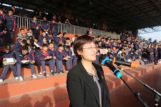 “体育运动是人类文明生活中不可或缺的部分,在影响和塑造现代人的精神与身体方面发挥着重要作用。体育的精神,就是竞争的精神、超越的精神,就是在自觉遵从共同规范的前提下,最大可能发挥个人的潜力、追求卓越和成功的精神。”王孝玲说,“今天的运动场,是你们展示青春和梦想的舞台,是展示速度与力量的舞台,也是绽放生命精彩,释放生命激情的舞台,更是展示同学们道德品质的舞台。在运动场上,果敢与迟疑,勇猛与懦弱,坚毅与气馁,积极与被动,竞争与合作,沉着与机智,同情与关爱都能得到充分的体现。运动场上的各项比赛,都是在考量我们的协作精神、顽强品质、集体观念、心理承受能力和精神修养。因此,本届阳光体育节,是对同学们体育运动水平的一次检阅,更是对同学们的道德品质、思想作风和精神面貌的一次检阅。我们相信,无论是场上努力拼搏的体育健将,还是场下热情服务的后援同学,都将是运动会上最靓丽的风景!”她期望,同学们无论是在胜利荣誉到来时,还是在面对挫折与失败时,保持冷静、容忍和理智,充分发扬 “友谊第一、比赛第二”的精神,赛出竞技水平,赛出道德风尚,赛出个性风采,赛出团结友谊。