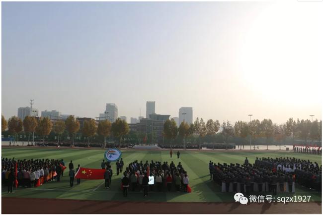 操场上彩旗飘扬。伴随着激昂的运动员进行曲,宿迁中学第二届阳光体育节暨2019年秋季运动会拉开帷幕。