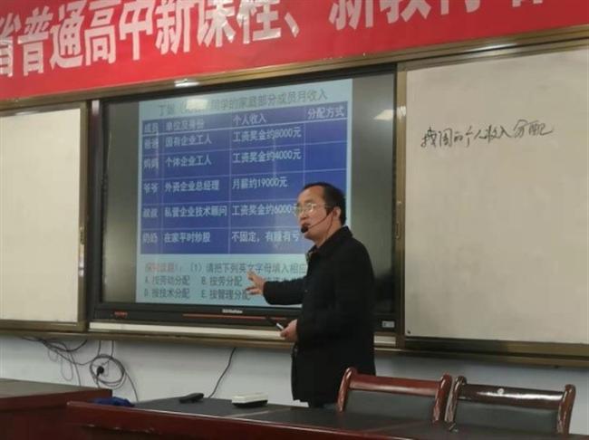14日上午,来自无锡、扬州、连云港、镇江、淮安、宿迁的老师分别在胡宁报告厅和张裕恒报告厅开设观摩课,宿迁中学周府老师执教《我国的个人收入分配》。