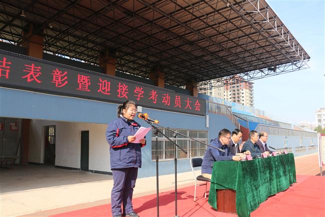 优秀学生代表高二6班张玲同学表态发言。她提出,我们要有“我能成功、我必成功”的坚定信念,要树立“依靠自己、战胜自己、超越自己、成就自己”的自强不息的精神,要有坚持“堡垒一个个攻克,险滩一条条趟过”的务实作风,要要“一日胜十日”的科学高效的学习方法。