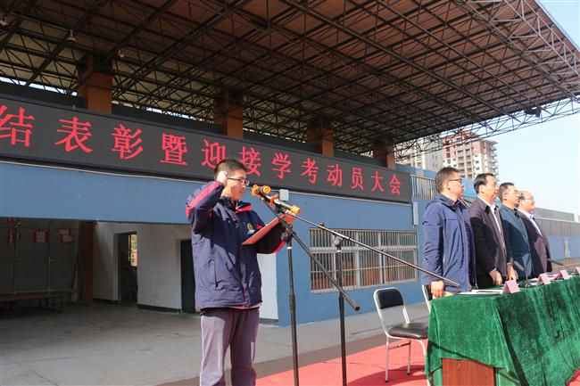会议最后,高二年级5班的刘宇轩同学带领全体同学宣誓。大会在充满激情的洪亮的誓言中落下了帷幕。