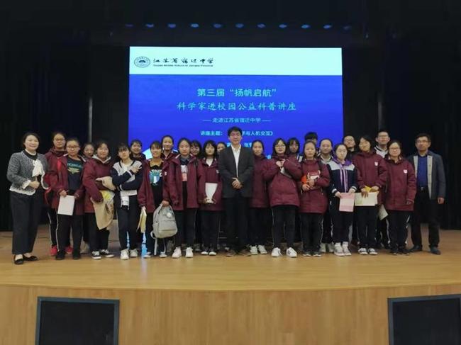 3、第三届“扬帆启航”科学家进校园公益科普讲座活动走进宿迁中学。