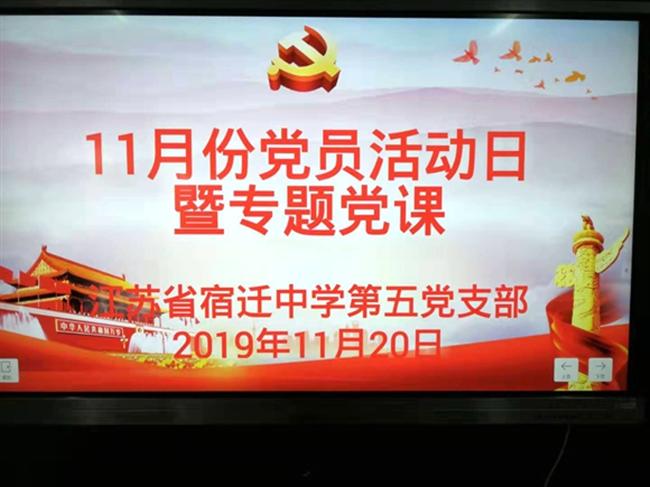 11月20日,宿迁中学第五党支部在明德楼第一会议室开展了11月份党员活动日。第五支部书记刘宏同志主持了活动日活动。