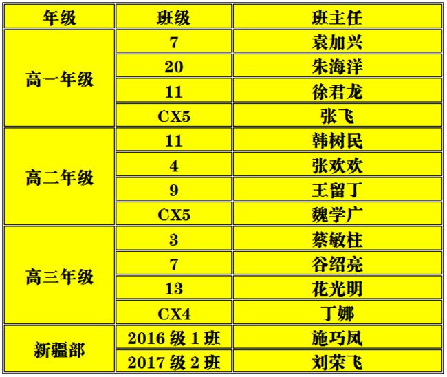 高三5班、8班、14班、17班;高二9班、10班、11班、19班;高一创新1班;高二创新4班;高三创新4班。