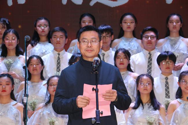 决赛现场,校党委委员王振文致开场辞:八十四年前,青年学生游行呐喊,唤醒了旧中国的觉醒;八十四年后,莘莘学子激情高歌,唱响了新时代的强音。他勉励学生们厚植爱国主义情怀,铭记历史,好学力行,勇担重任,建设国家。