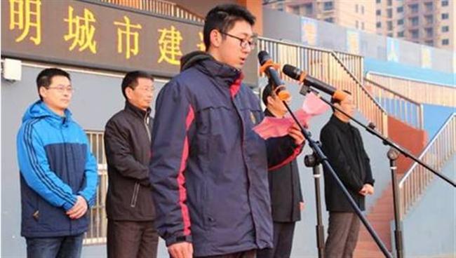 升旗仪式上,学生代表高二(5)班金圣川向全校同学宣讲禁止燃放烟花爆竹的重要意义,以及燃放烟花爆竹可能带来的安全隐患,倡议全体同学不燃放烟花爆竹,并自觉抵制购买、燃放烟花爆竹的行为。