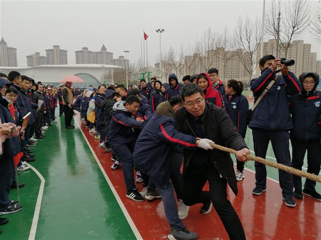 赛场上,班主任们组织各自队伍,同学们不断调整站立姿势。比赛还未开始, 场外拉拉队员的呐喊助威声就已经此起彼伏。随着裁判的一声哨响,同学们尽量压低重心,双手紧紧抓住绳子一齐发力,双方队员都使出全身气力一争高下,不到最后时刻绝不放弃,展现了2020届高三学子“齐心协力,勇创佳绩,顽强拼搏,所向无敌”的良好精神风貌。本着“友谊第一,比赛第二”的