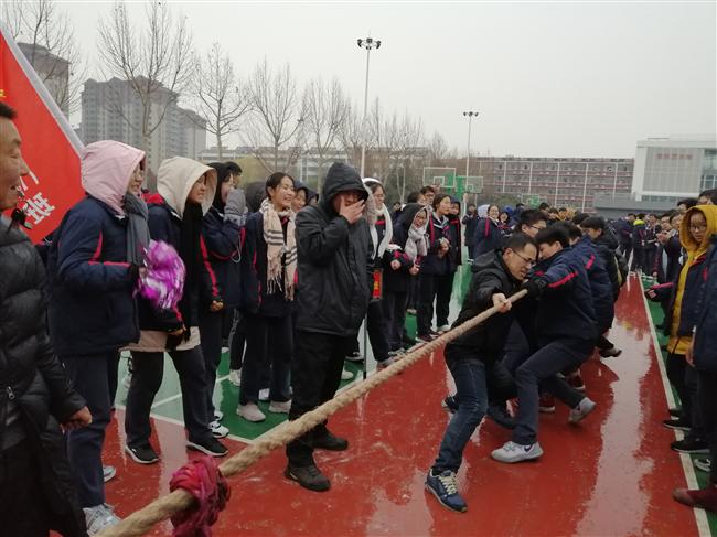 为调节紧张的学习生活,营造积极向上、团结和谐的学习氛围,12月24日下午,在高三年级和体艺卫处的精心组织安排下,宿迁中学高三年级在篮球场上举办了迎元旦拔河比赛。