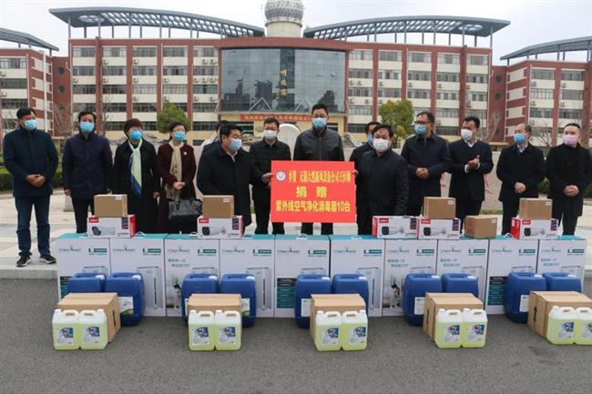 华志明介绍了捐赠相关情况后,市委教育工委书记、市教育局局长汤成军代表市教育局接受了乡贤们捐赠的热成像测温仪、紫外线消毒器和消毒液。