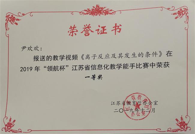 祝贺尹欢欢老师荣获江苏省信息化教学能手比赛一等奖
