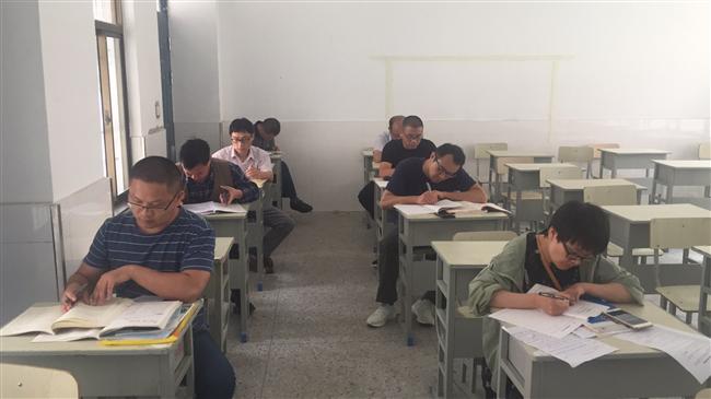 6月8日是集体备课新方案实施的第一天,高二政治、历史、地理组的老师们在认真备课。