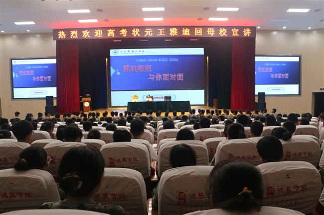 8月24日晚上,宿迁中学在宣德厅迎来了优秀毕业生王雅迪同学。王雅迪是2020届江苏省文科状元,即将进入清华大学就读,她这次讲座主要是给高一的学弟学妹们传授自己的学习经验,给学弟学妹们未来的三年生活提出相关建议。