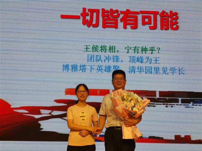 活动的最后,清北学子代表王雅迪向张德超校长敬献鲜花以表示对母校的感恩,为讲座画上了完美的句号。