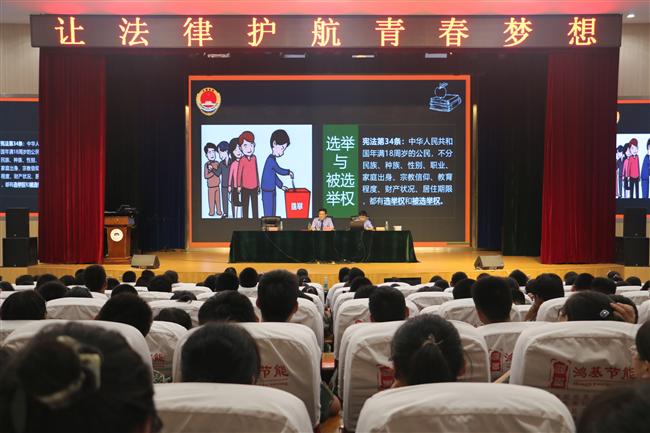 本次法治课题为“让法律护航青春梦想”,刘加云代检察长向同学们详细讲解了四个方面的法律知识。一是了解我们的权利;二是了解我们的义务;三是遇到侵权行为怎么办;四是远离青春期常见的三宗罪。