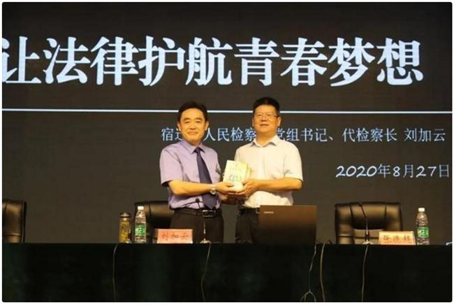 授课开始前,刘加云代检察长接过张德超校长颁发的聘书,成为宿迁中学法治副校长。