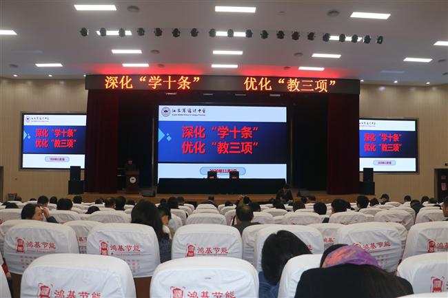 为全面总结10月份所做工作,安排好11月所做工作,11月3日晚8:00,宿迁中学在宣德厅召开了主题为“深化‘学十条’,优化‘教三项’(备课、上课、批改)的月度工作例会,全校教职工参加了会议,会议由副校长纪文杰主持。