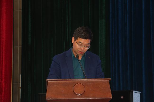 高一年级实验部主任邱绍军、高二年级创新部主任朱明航、高三年级班主任张欢欢老师代表各年级作了深化学风建设工作交流。