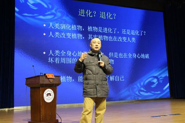 11月26日,第四届“扬帆启程-科学家进校园”公益科普讲座走进宿迁中学,北京植物园科普中心主任王康教授在宣德厅作了题为《神秘的植物世界》的讲座。