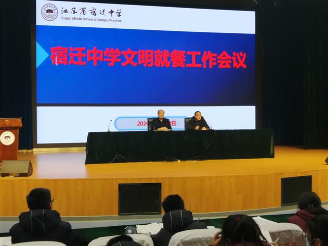 细微之处现品格,文明校园我先行。为进一步促进学校的食堂文明建设,创造良好的就餐环境,12月10日,宿迁中学在宣德厅召开文明就餐工作会议,总务处副主任于建飞,各班级班长、生活委员参加会议,会议由政教处副主任吴绍峰主持。