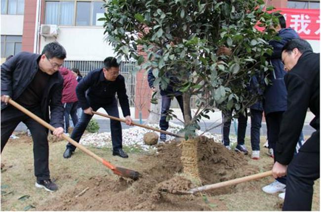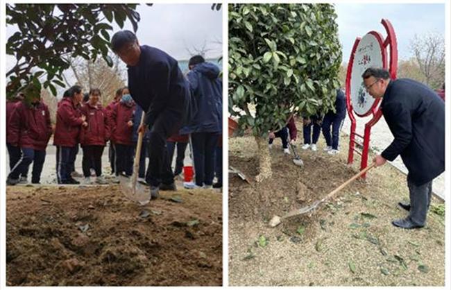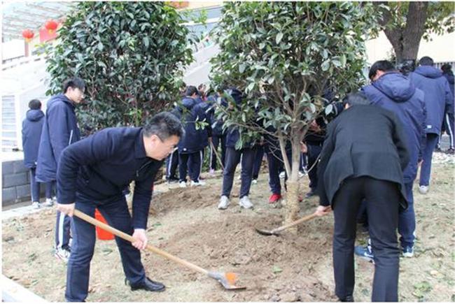 3月12日下午,我校党委书记、校长张德超,党委副书记王勋,党委委员、副校长王爱斌,党委委员王振文,纪委书记臧其胜、党委委员徐士权,高一、高二年级的分管领导、班主任和同学参加了植树活动。同学们分工协作,配合默契,或挥锹铲土,或手扶树苗,或提水浇灌。老师们现场指导,同学们干劲十足,整个活动现场繁忙而有序。刚种下的树苗,在春风中傲然挺立,在阳光下绿意盎然。