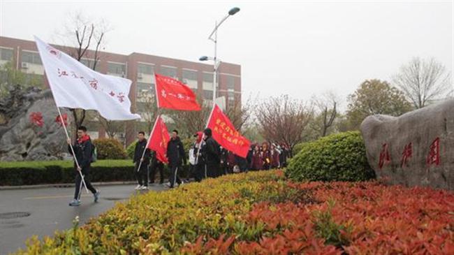 “飘扬的旗帜,引领我们勇敢前行;长征的精神,激励我们斗志昂扬……”在嘹亮的宣誓声中,该校高一全体师生,神采奕奕,士气昂扬,迈着铿锵有力的步伐开始了这次意义非凡的远足活动。