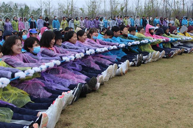 大家顾不得休息调整,迅速加入拓展活动——同心圆。1400余名同学组成7个同心圆,挑战共同摇动同心圆活动。在同学们齐心协力的努力下,挑战圆满结束。