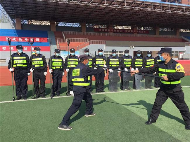 成立学校处突小组,组织学校保安开展演练活动,提高快速反应能力,提升维护国家安全的意识和能力。