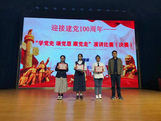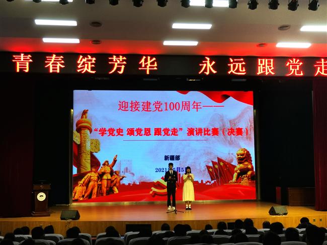 为了迎接中国共产党百年华诞,深入贯彻落实习近平总书记在党史学习教育动员大会上的讲话精神,扎实开展中学生党史学习和爱国教育活动,引导学生重温党的历史,传承红色基因,铭记党的初心使命,宿迁中学新疆部于5月5日晚在宣德厅举办了“学党史、颂党恩、跟党走”演讲比赛(决赛)。宿迁中学党委委员、副校长纪文杰出席本次活动并担任评委。新疆部高一、高二全体学生和部分老师共同参加了活动。