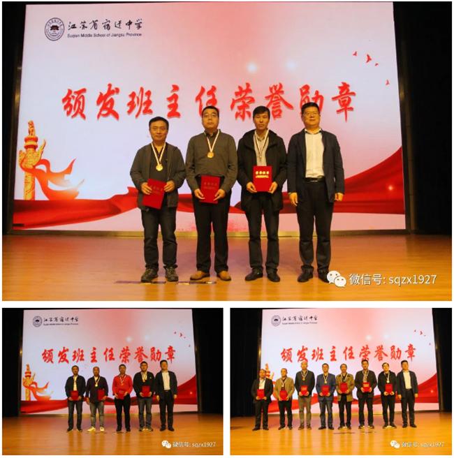 张校长为晋升荣誉勋章的老师授予勋章并颁发奖状,激励全体班主任坚守岗位,为学校高品质示范高中建设作出更大贡献。