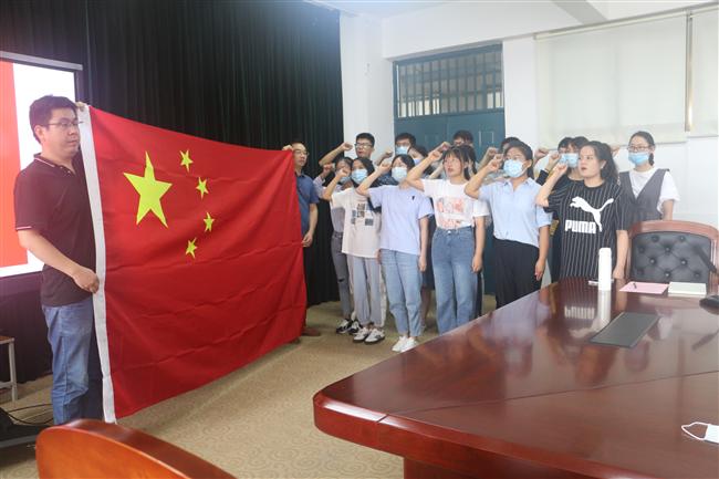 在严肃、郑重的氛围中,新教师面对国旗庄严宣誓。