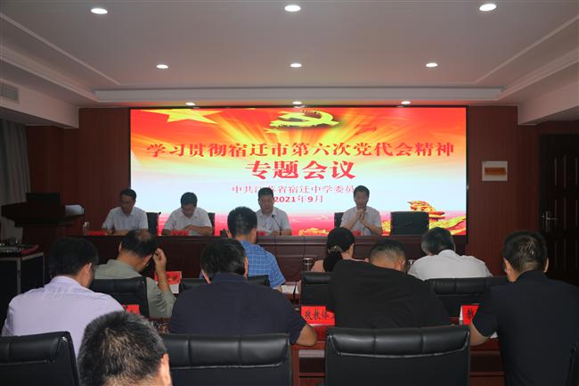 9月28日,宿迁中学召开学习贯彻市第六次党代会精神专题会议。市第六次党代会代表、校党委书记、校长张德超主持会议,领导班子成员、支部书记、中层教干和学科中心副主任参加会议。