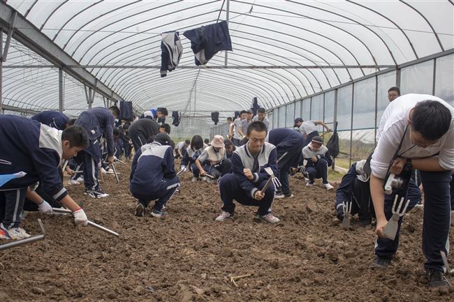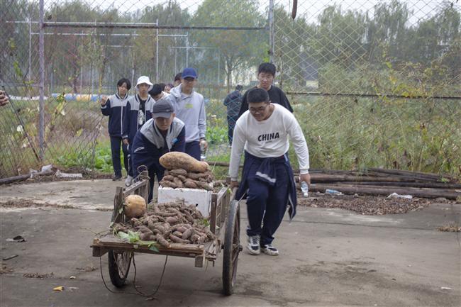 活动中,学生们在农业园指导员的带领下排好队,分好组,备好农具,扛着队旗,前往各自的劳动场地。杂草地里,学生们挥舞着锄头,卖力的除草,即使大汗淋漓,也毫不停歇;红薯地里,学生们耐心刨锄,仔细将红薯上的泥土剥离,即使满身泥泞,也毫不在意;大棚地里,男生们翻土,女生们撒种,在指导员的讲解下,完成了萝卜和白菜的播种,在深秋种下了一批希望的种子,在严冬将收获一份特有的温暖。天气微凉,细雨朦胧,也挡不住学生们劳动的热情,农业园里,一场辛勤的劳作正如火如荼的进行着。