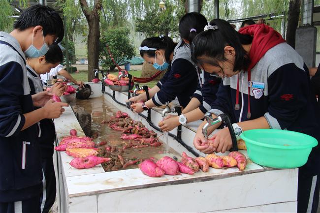 一分耕耘,一分收获。“经过这次切身的田地劳作,我了解了红薯的生长习性和特征,也学会了挖红薯的技巧,我在劳动中收获最多的不仅是红薯,还有满满的成就感。”高一(1)班学生王胜杰捧着刚挖出的红薯兴奋地说。学生们将挖出的红薯一一洗净,并动手搭建烤红薯的泥坑,在原生态的烤红薯过程中体会到了劳动的艰辛与不易,但香甜的红薯也让他们感受到了劳动带来的乐趣和幸福感。看着翻新耕种过的土地,高一(24)班学生温蓓业手捧剩余的种子,熟练地介绍到,“这种棕黄色、扁扁的是萝卜种子,而这种黑棕色小圆球形则是白菜种子,在刨土时要注意轻轻划出一道浅沟......这节劳动教育课,不仅仅丰富了我的农耕知识,更多的是锻炼了身心,释放了课业压力,真正做到了劳逸结合。”