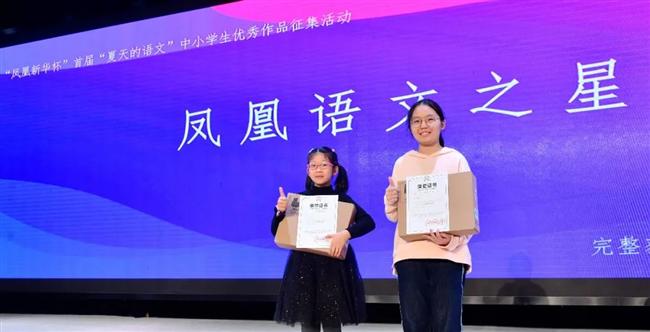 在10月16日颁奖典礼现场,从全国遴选出的12名特等奖(包括小学组和中学组)作者现场PK。吴奕桥同学凭借作品《超脱》和精彩的演讲征服现场评委,获得了全场最高分 95.3 分,最终荣获“凤凰语文之星”称号。