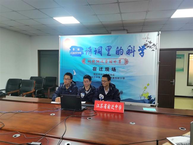 比赛现场,选手们通过网络连线的方式品味诗词之美,感受科学之道,展开激烈角逐。比赛过程中,宿迁中学三位同学齐心协力,沉着应战,展现出丰厚的诗词和科学原理知识储备。