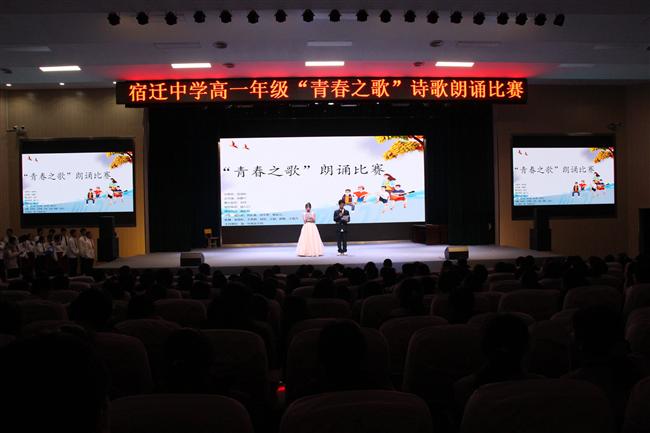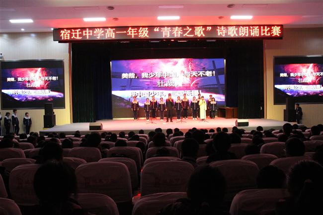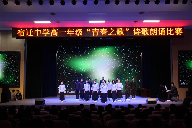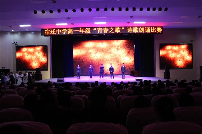 为进一步推进素质教育,更好地培养学生的创新意识,锻炼学生的实践能力,培养学生团队协作能力、研究性学习能力、勇于探索的优秀品质和崇文尚美的人文精神,贯彻落实学校“四有深学”课堂理念,2021年11月24日晚,宿迁中学高一年级实验部于明德楼宣德厅举行“青春之歌”诗歌朗诵比赛。校党委委员、副校长、高一年级分管校长纪文杰、实验部主任于建飞、实验部组长苏欣欣出席了本次活动,高一年级实验部语文组成员担任活动评委,全体学生参与活动。