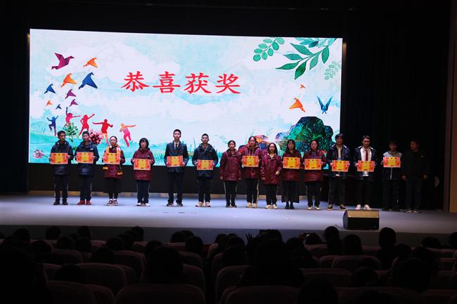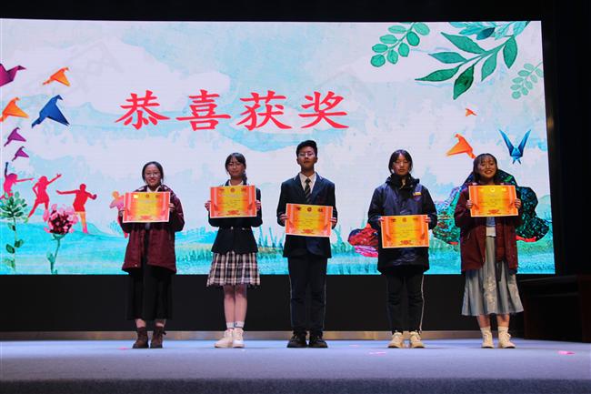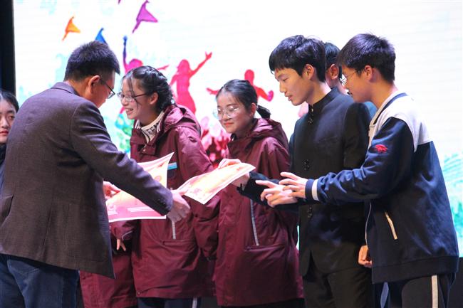 此后,“青春之歌”朗诵比赛颁奖仪式隆重开始,年级领导分别为获得二等奖、一等奖、特等奖的班级颁奖。