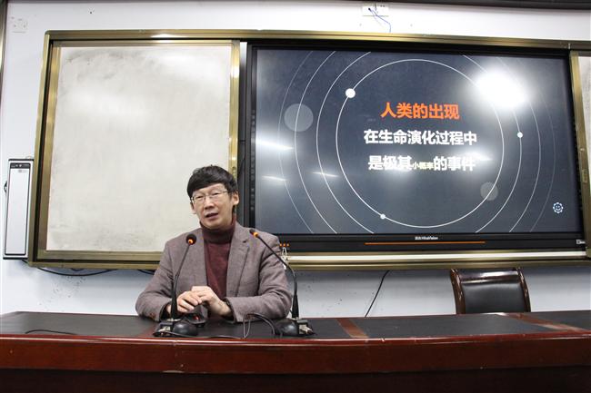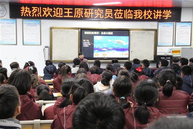 王原研究员以《征程——从鱼到人的生命之旅》为题,从探寻人类的起源出发,溯源至距今5亿多年前寒武纪海洋中的一条小鱼,历数5亿多年来地球生命演化史中的九大事件,讲述了“从鱼到人”的演化历程。讲座现场,同学们认真思考,大胆提问,与王原研究员积极互动。王原研究员鼓励同学们创新思考,培养科学精神,正确看待世界,积极应对未来。