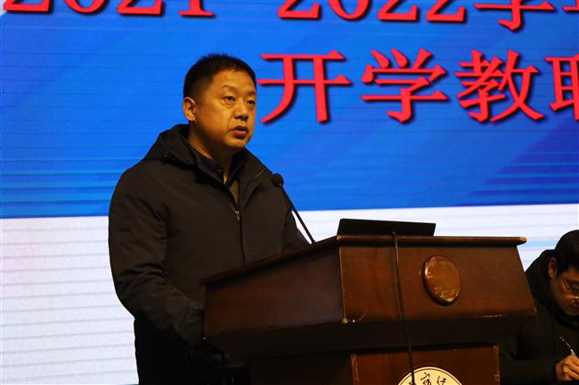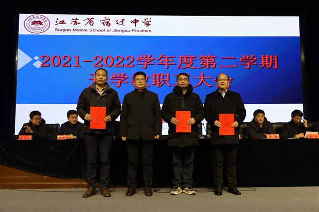 校党委书记、校长张德超作了题为《追求融通育人,创建“三高”名校》的讲话。张校长带领大家一同回顾了2021年宿中的发展和收获,分析了2022年宿中所面临的四大新挑战,即高考突破的挑战、高品质示范高中创建提档的挑战、优质生源集聚的挑战和品牌声誉提升的挑战。为了应对这些挑战,张校长整合并细化了2022年宿中将要完成的16条工作目标并勉励全体教职工要认真学习和参照这16条目标,勇敢的走出“舒适区”,走进“挑战区”,不断实现自我的新突破,为宿中高品质高中的建设贡献自己的力量。