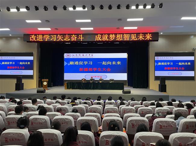 新疆部于近日晚在学校宣德厅召开学生大会。会议由新疆部副主任施巧凤主持,校党委委员、纪委书记、民族合作与交流处处长臧其胜,新疆部主任黄朝松、全体班主任、内派老师共同参加会议。