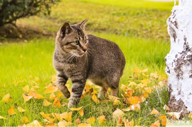 小猫咪在落叶堆玩耍