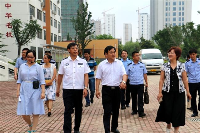 7月4日下午,在市公安局党委副书记、常务副局长孙维带领下,市公安局治安支队长陈彦、科信处长贺晓峰、交警副支队长吴昊、反恐支队长王支全、内保支队长谭永洁一行六人来到我校,考察了我校校园安全工作。市委教育工委书记、市教育局局长汤成军,市教育局副局长龚显梅陪同了考察。
