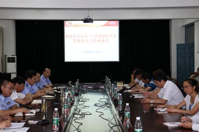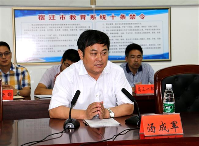 汤成军局长代表市教育局对孙维一行对宿迁中学长期以来的关心表示感谢,对市公安部门对宿迁教育的支持表示赞赏。汤局长介绍了近年来宿迁教育的发展情况特别是今年的高考成绩。今年的全市高考在原有的基础上又有了新的突破,无论是本科达线率还是尖子生群体都有很大提升。汤局长对我校一年来的各方面工作表示肯定。他说,宿迁中学在王孝玲同志为班长的领导集体的带领下,精致管理、精心谋划,无论是校园建设还是教育教学,各方面都取得了明显的成效,特别是信息化、智能化方面迈出了可喜的一步。他对宿迁中学近一年来的发展感到欣慰。汤局长希望宿迁中学以十二五所取得的成绩为基础,精心部署,攻坚克难,以“全市第一、省内一流”为目标,扛起宿迁基础教育的旗帜,培养出更多更优的宿中学子。