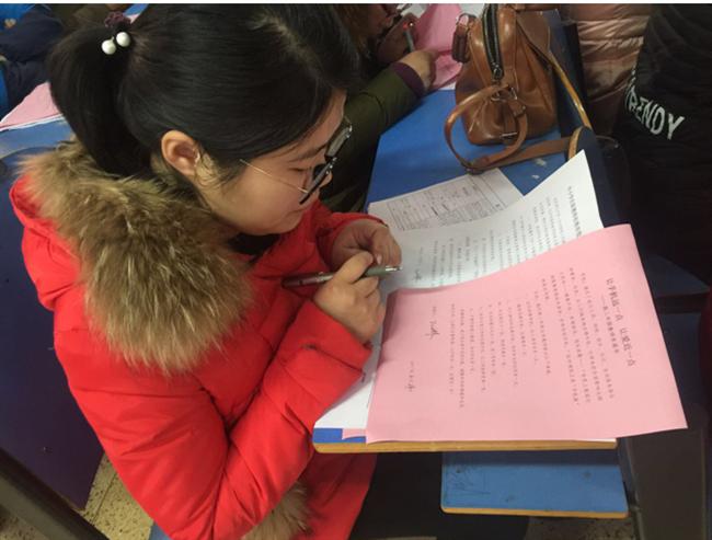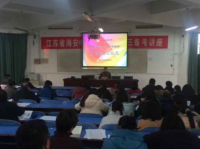 2月24日下午5:00,高二年级组织全体教师在西阶梯教室签订《不带手机进教室承诺书》。