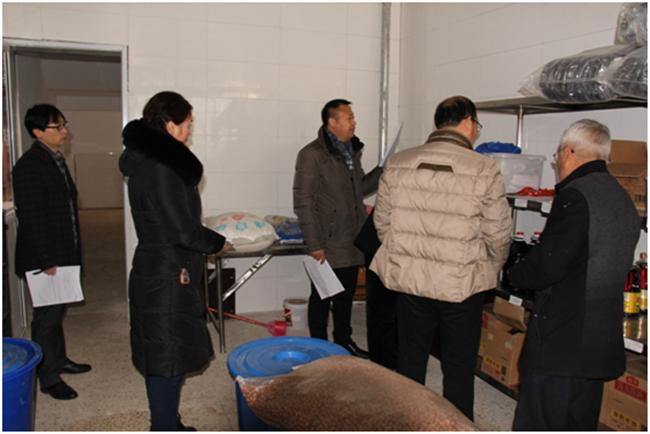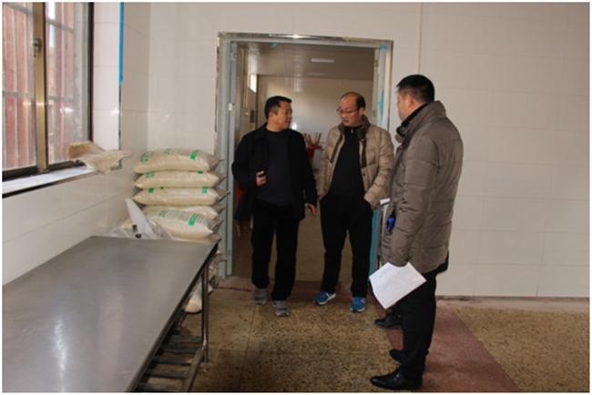 其次、三校联合检查组一行人来到我校食堂,听取了于建飞主任对我校食堂尝餐制度、饭菜留样制度、餐饮具消毒制度、食材采购,主副食仓库防尘、防蝇、防鼠等设施的详细介绍。一行人现场查看了贮藏室,洗漱间。检查组提出:1、一定要规范用电,用燃气的操作流程;2、要对食堂从业人员定期进行安全教育。3、安全隐患一定要及时上报。