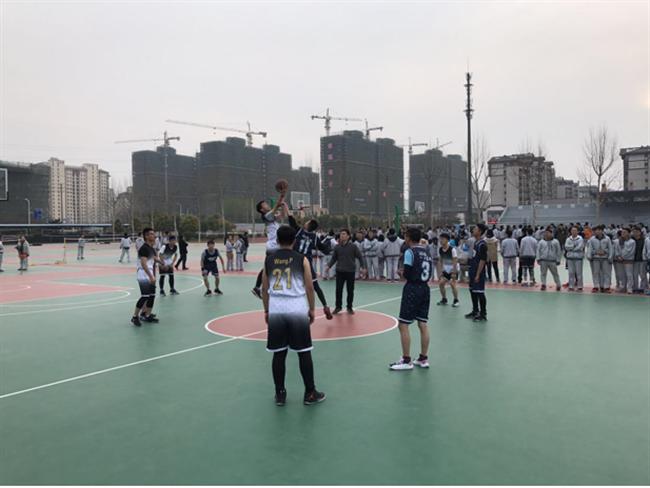 为丰富校园课余生活,加强班级联谊,增强班级凝聚力,提高学生积极参加体育锻炼的兴趣,由宿迁中学体卫艺处主办,高二年级、高二创新部、新疆部参与,为期6天的篮球联赛于今天下午在学校篮球场正式拉开帷幕。开幕式由体卫艺处刘宏主任主持,黄朝松主任、谷利庭主任、周明主任、董祖国主任参加,校党委委员、高二年级分管领导臧其胜同志宣布比赛正式开始。本次比赛裁判由体育组的几位老师和特邀篮球爱好者担任。