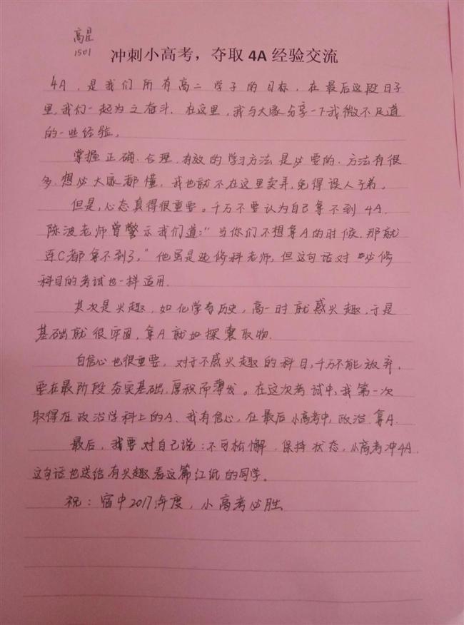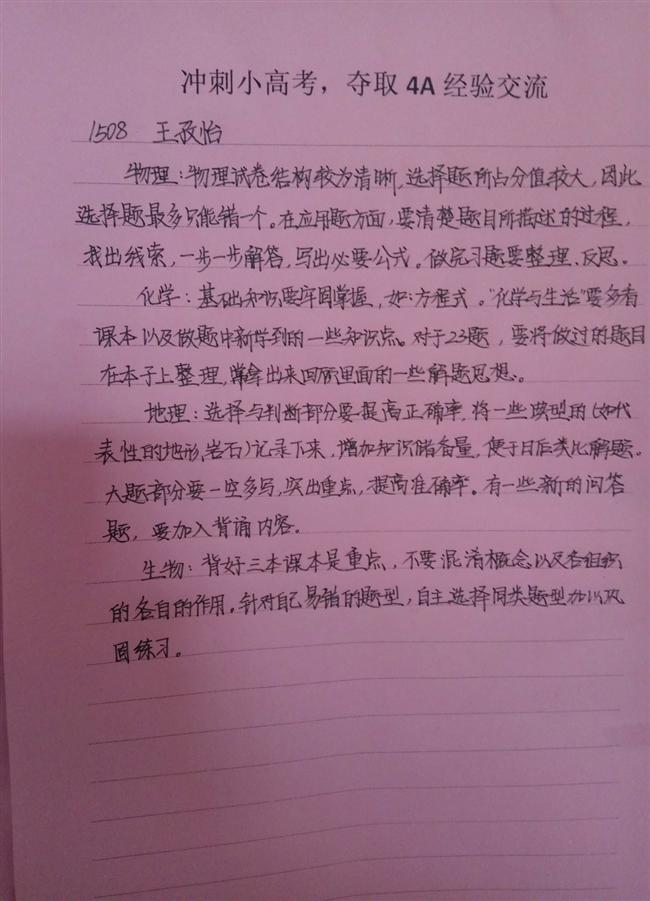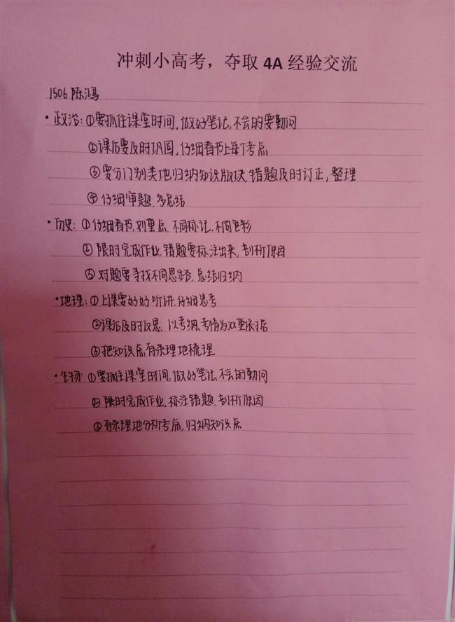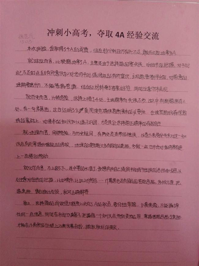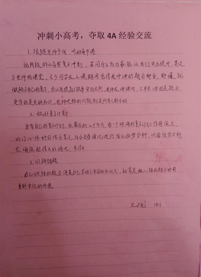 【回顾篇】之高二1部第一次全市统测获得4A同学的经验交流(二)